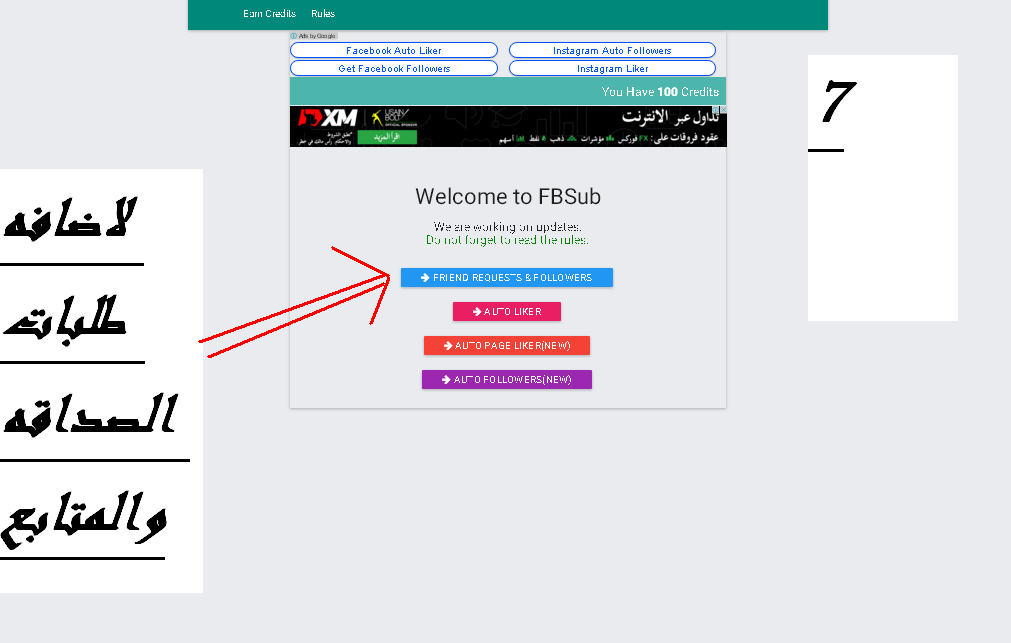 لاضافه متابعات وطلبات فيس بوك نضغط علي: